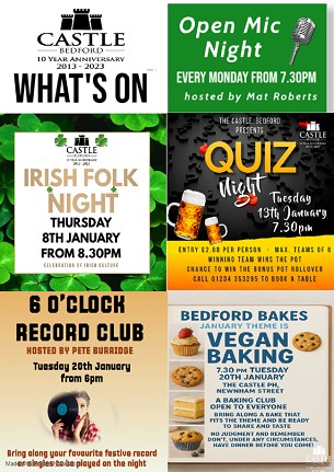 The Castle is a 19th Century traditional family run Inn which is situated in the Castle Quay part of Bedford, close to the River Ouse, Bedford's Cecil Higgins Museum and a five minute walk to Bedford Blues rugby ground, as well the High Street and shopping area.